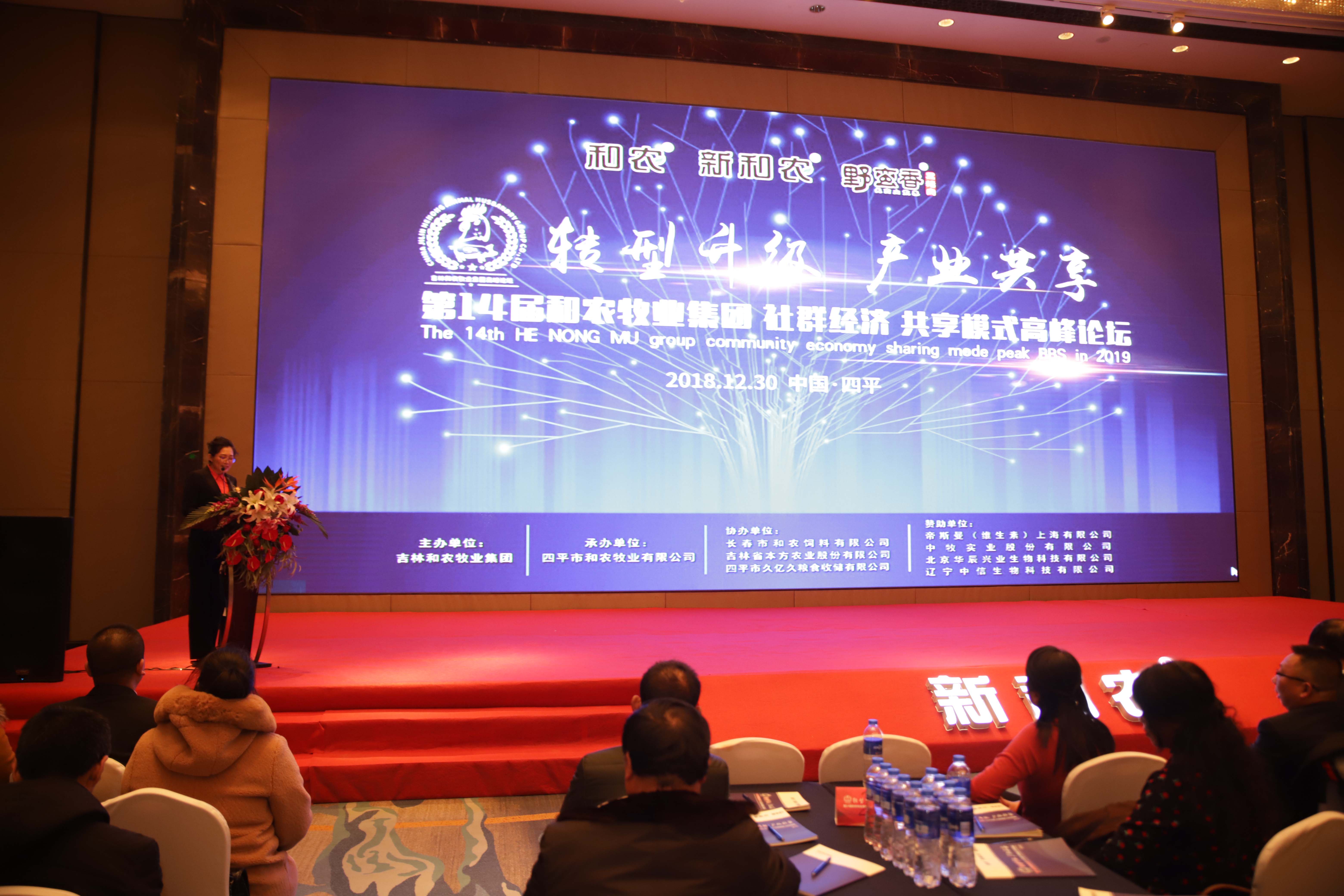 由吉林和農(nóng)牧業(yè)集團(tuán)主辦,四平和農(nóng)牧業(yè)承辦,長(zhǎng)春和農(nóng)、本方農(nóng)業(yè)、久億久糧食收儲(chǔ)協(xié)辦,帝斯曼、中牧實(shí)業(yè)、北京華辰興業(yè)生物、遼寧中信生物贊助支持的 "轉(zhuǎn)型升級(jí) 產(chǎn)業(yè)共享" —— 第十四屆和農(nóng)牧業(yè)集團(tuán) 社群經(jīng)濟(jì) 共享模式 高峰論壇在四平萬(wàn)達(dá)嘉華酒店隆重舉行。來(lái)自東北三省300余位企業(yè)優(yōu)秀代表參加了主題為“轉(zhuǎn)型升級(jí) 產(chǎn)業(yè)共享 社群經(jīng)濟(jì) 共享模式”的高峰論壇。